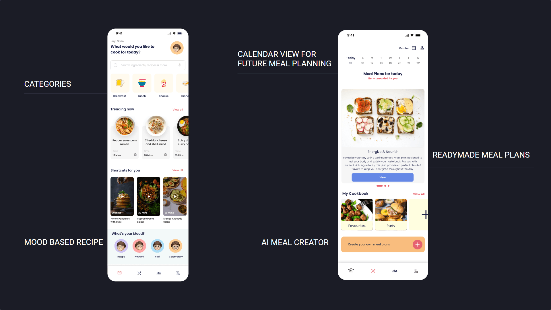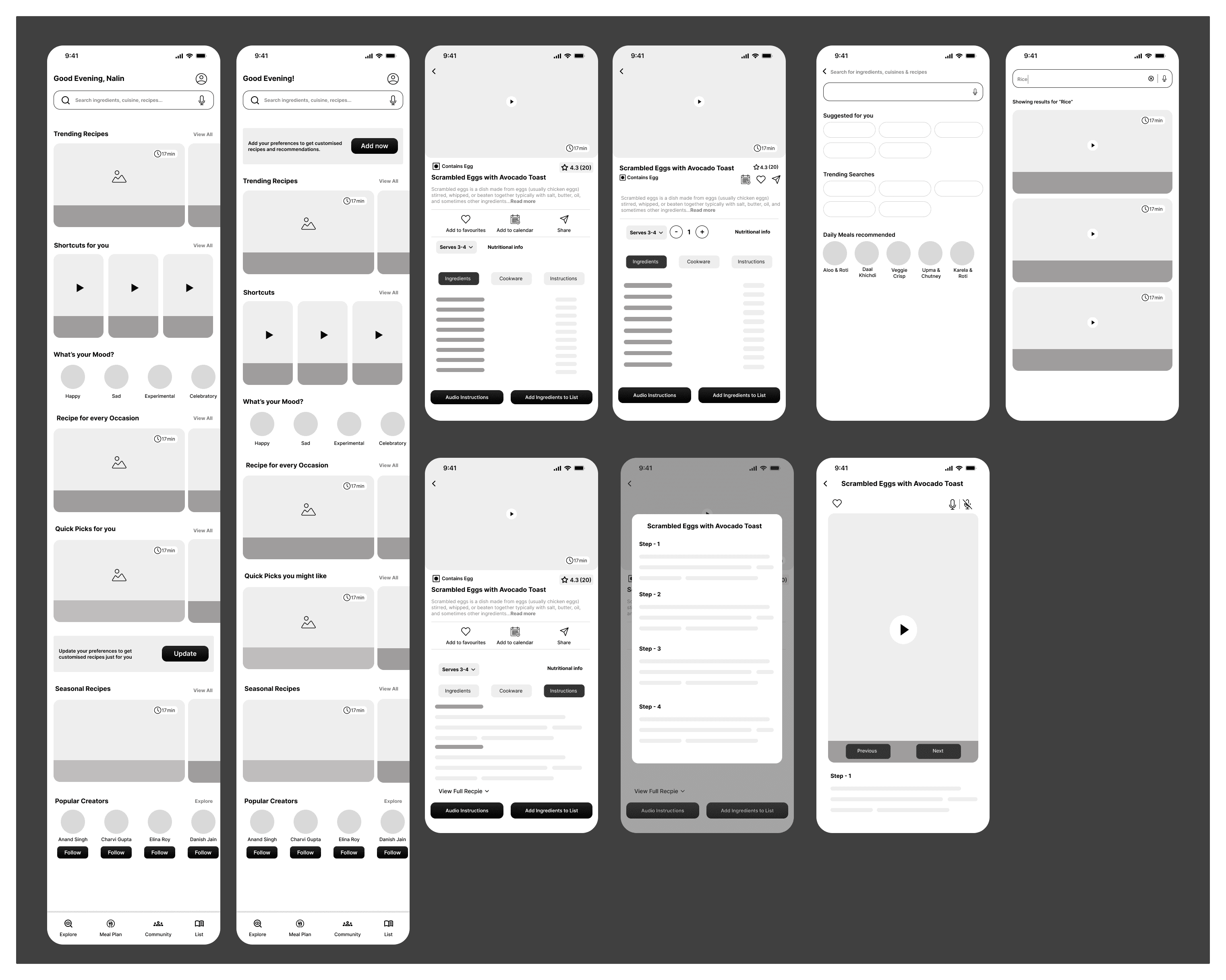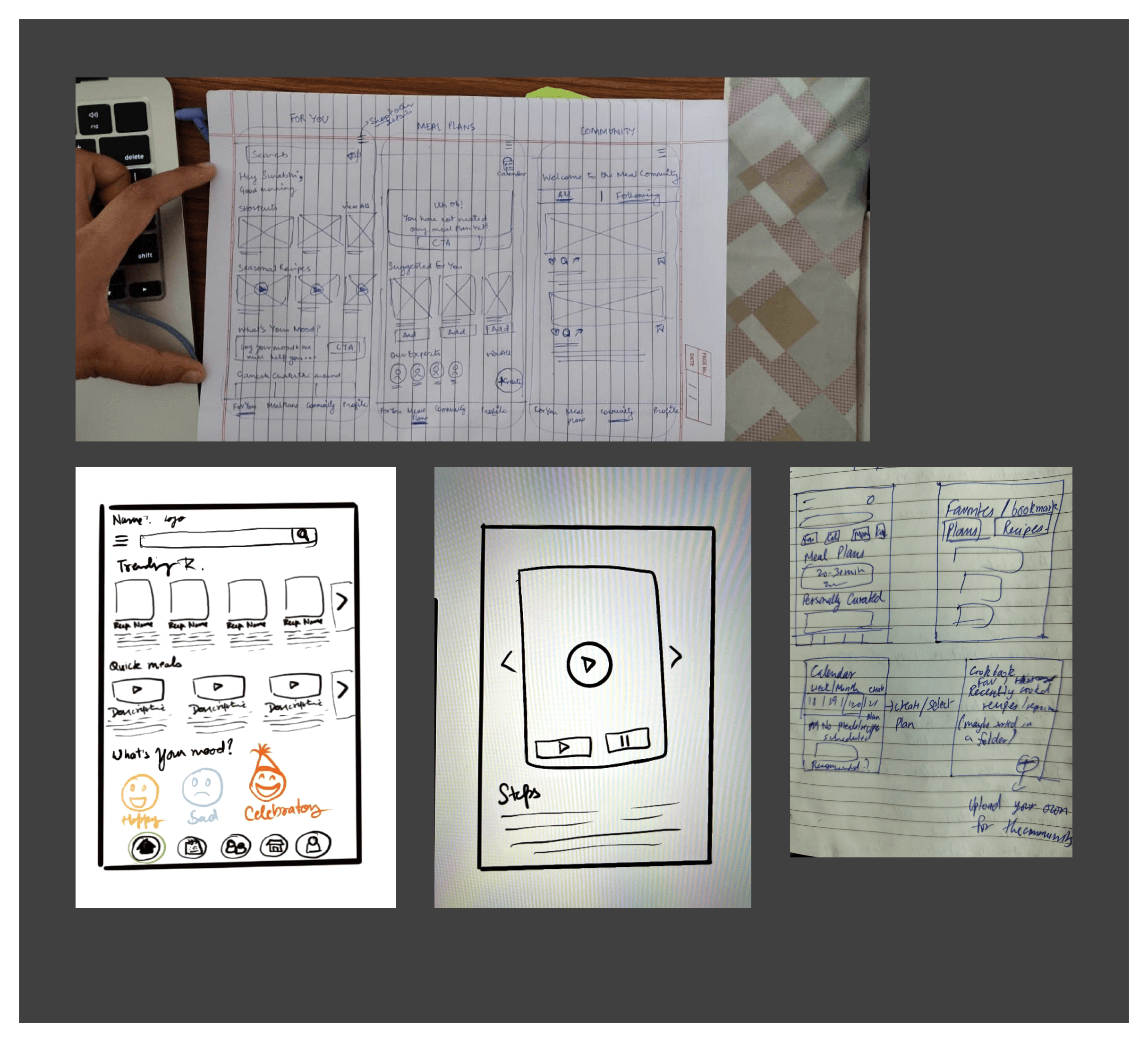 Our approach to designing the app began with thorough user research, where we gathered insights into users' needs, preferences, and pain points. With a focus on usability and innovation, we brainstormed features and functionalities to address these insights, creating a seamless user experience. We meticulously crafted the app's architecture, wireframes, and visual design, ensuring every element was intuitive and visually engaging. Our goal was to deliver a solution that simplifies meal planning, inspires culinary creativity, and ultimately makes the process of preparing meals easier for users.