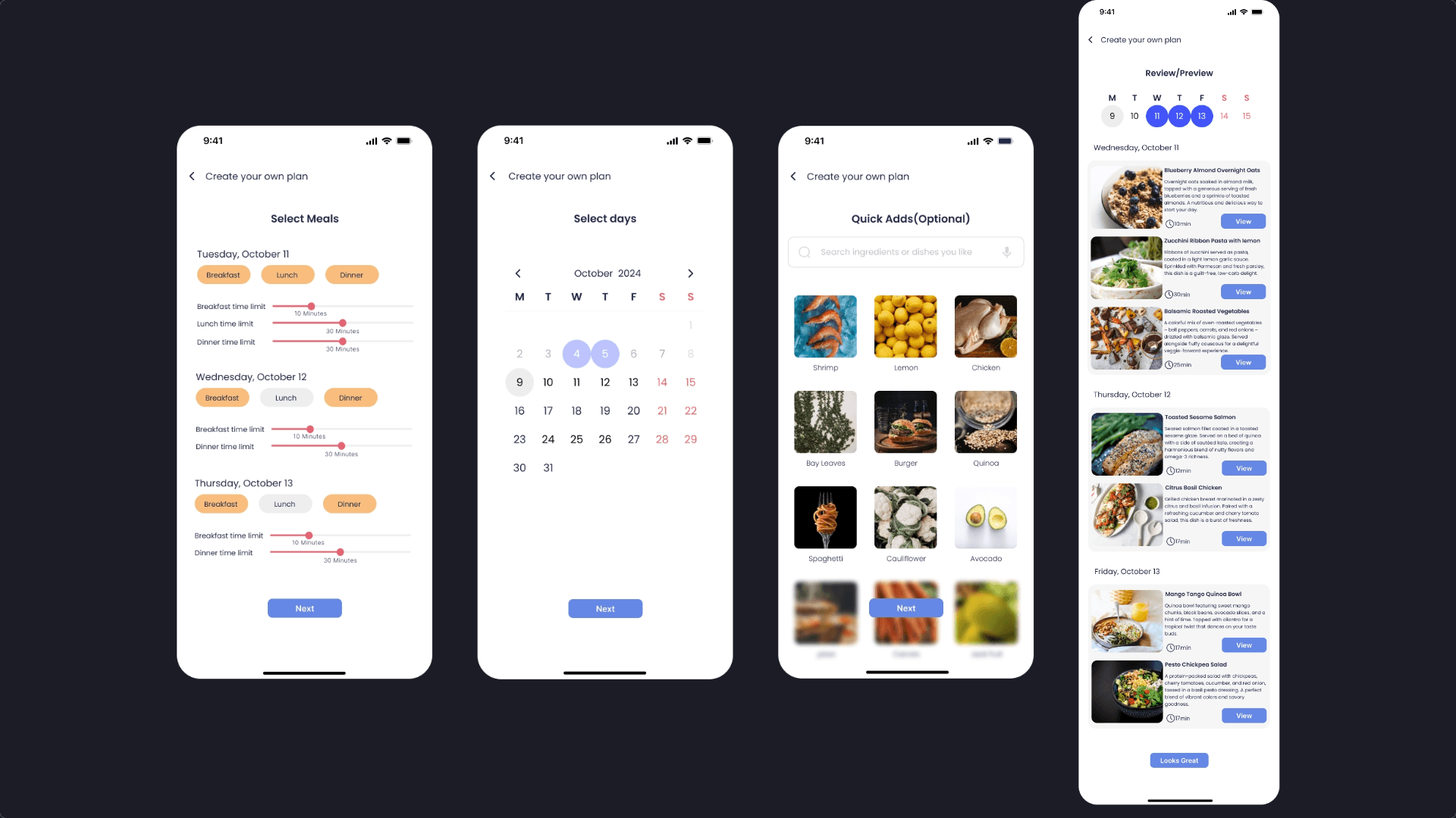 In today’s fast-paced world, people are increasingly looking for convenient and healthy ways to manage their meals. Our goal was to design a meal prep app that simplifies the process of planning, shopping, and cooking meals while promoting healthy eating habits. We utilized research findings to inform our design decisions.